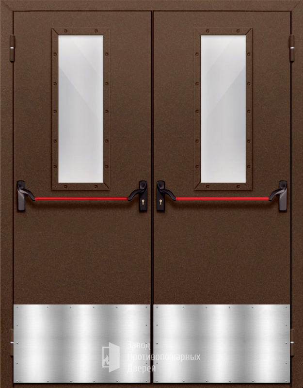 Маркировка Противопожарная Двупольная дверь с прямоугольным стеклом ДПМ-02-EIW15 с антипаникой