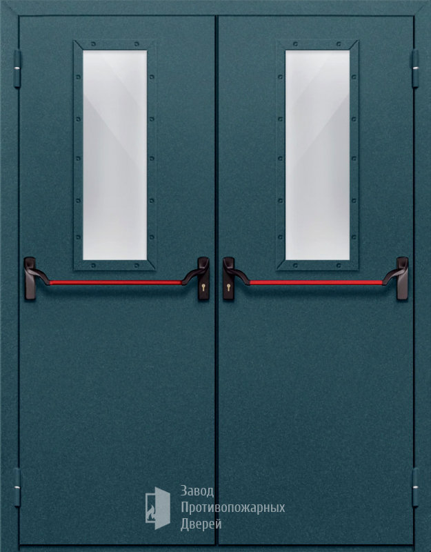 Маркировка Противопожарная Двупольная дверь с прямоугольным стеклом ДПМ-02-EIW60 с антипаникой